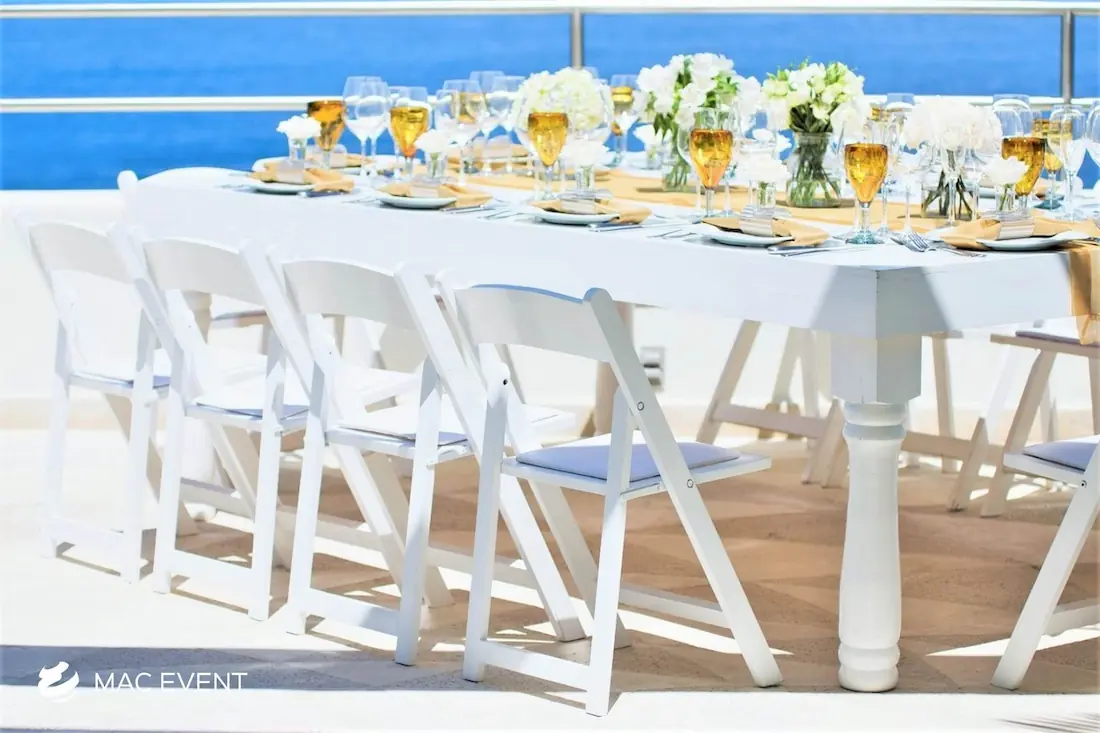 The avant garde chair and wooden padded folding chair are excellent options for creating stylish and comfortable event seating in Puerto Penasco. The avant garde chair offers a sleek, modern look that fits perfectly in contemporary weddings, corporate events, and upscale parties. In contrast, the wooden padded folding chair provides a classic and warm appearance with the added benefit of comfort and easy setup. Renting these event chairs allows you to match your theme, elevate your décor, and ensure your guests enjoy every moment. Whether you prefer modern sophistication or rustic charm, chair rentals in Puerto Penasco help you design a polished and inviting atmosphere for any occasion.