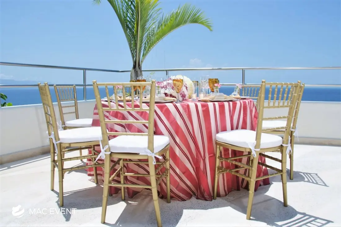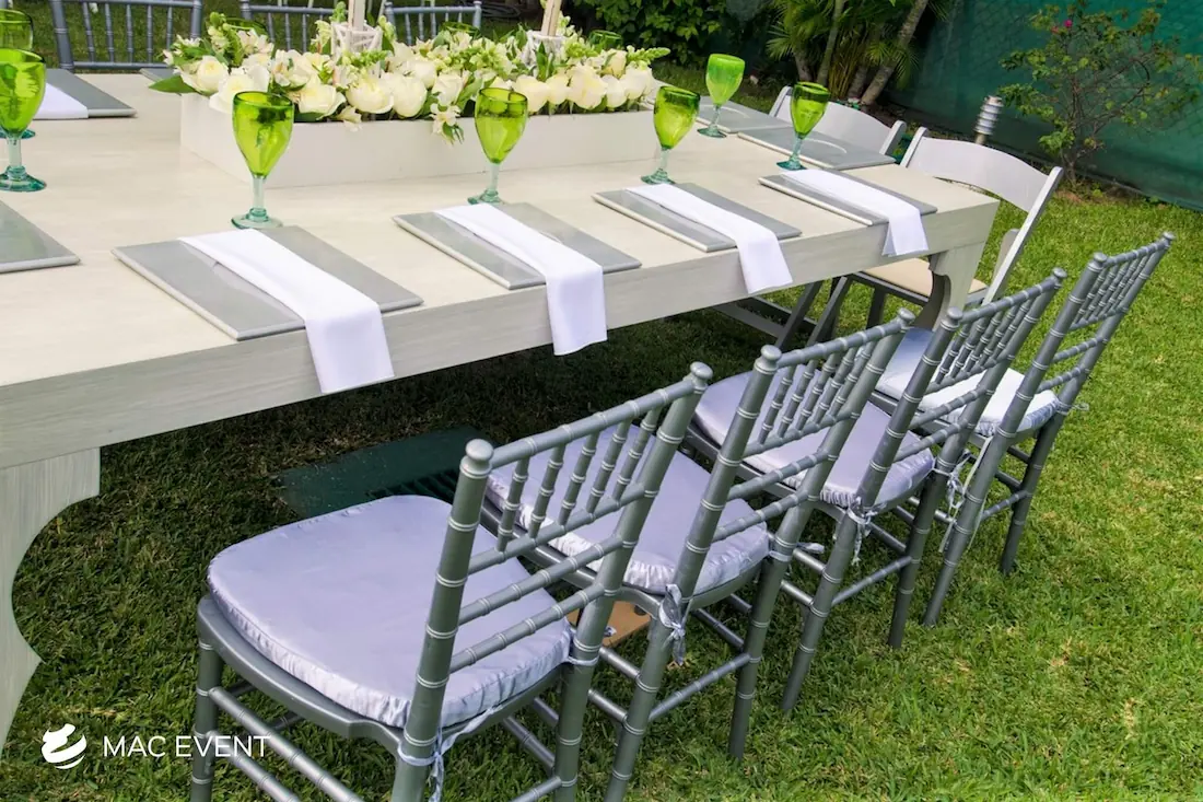 The resin chiavari chair, also known as a tiffany chair, is a popular choice for elegant weddings, private parties, and corporate events in Puerto Penasco. Its timeless design and glossy finish add a touch of sophistication to any setting, whether on the beach, in a garden, or at an indoor venue. Made from durable resin, this chiavari chair rental combines beauty and practicality as it is lightweight, sturdy, and suitable for any environment. Renting tiffany chairs ensures a coordinated and polished look that complements your décor while keeping guests comfortable. For style, comfort, and reliability, resin chiavari chairs are the perfect seating solution for any event in Puerto Penasco.