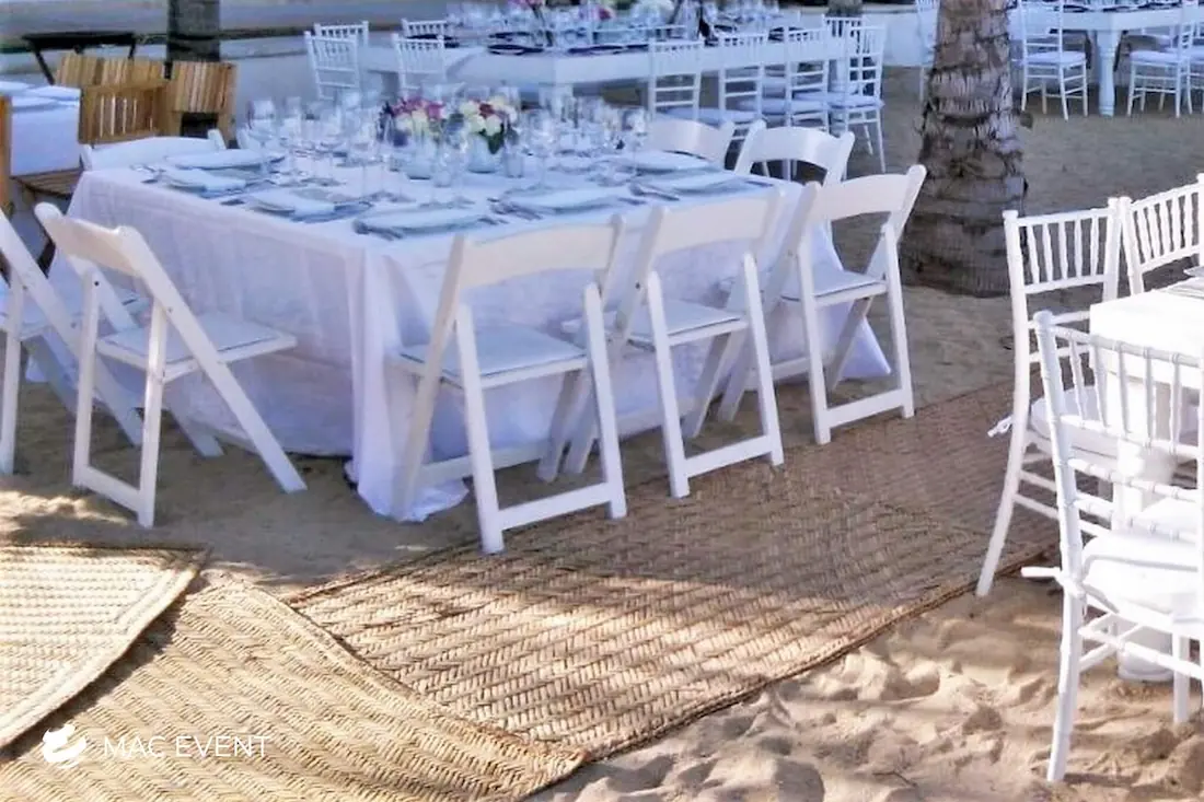 The petate mat adds a touch of authentic Mexican tradition to weddings, beach parties, and corporate events in Puerto Penasco. Woven from natural palm fibers, this event décor rental brings texture, warmth, and cultural charm to your setup. Perfect for picnic lounges, rustic themes, or boho-inspired spaces, the petate mat serves as a stylish base for floor seating, decorative accents, or display areas. Renting petate mats in Puerto Penasco allows you to create organic and inviting environments that reflect local craftsmanship. For a natural and culturally rich detail, the petate mat is a beautiful addition to any event.